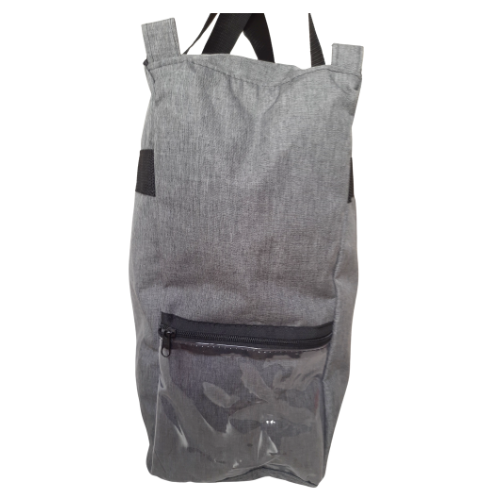 (2 imagem) Bolsa feita em tecido como Nylon Mesclado, são fios de poliéster com textura semelhante a um linho com dublagem em pvc soldado a trama. Forro feito em nylon 70 resinado cor preta, acabamento viés interno, fechamento zíper grosso n.8, bolsinho em pvc cristal transparente para controle do usuário. Fechamento com zíper grosso n.8 cor preta com detalhe no final do zíper para colocação de lacre quando necessário. Personalizada em serigrafia.