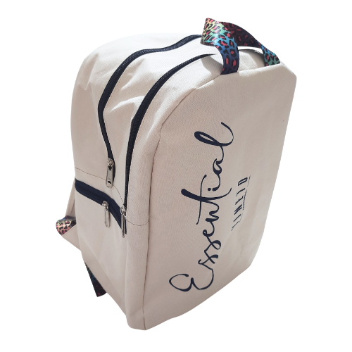 Mochila com 2 divisões principais, confeccionada neste exemplo em oxford PVC, tecido resistente com textura semelhante a uma lona de trama fechada, dublado em PVC, acabamento interno com viés de poliéster, as costas e as alças com espuma pack de 6mm embutidas para maior conforto do usuário. Bolsinho no fole para chaves celular. Reforço nas alças no mesmo material e alça de poliéster sublimada de 30mm, fechamento com zíper grosso n.8 importado, personalizada em serigrafia, acessório plástico ( passante duplo/ castelinho regulador das alças ).